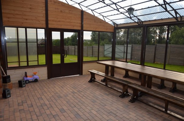 На территории расположена крытая веранда.