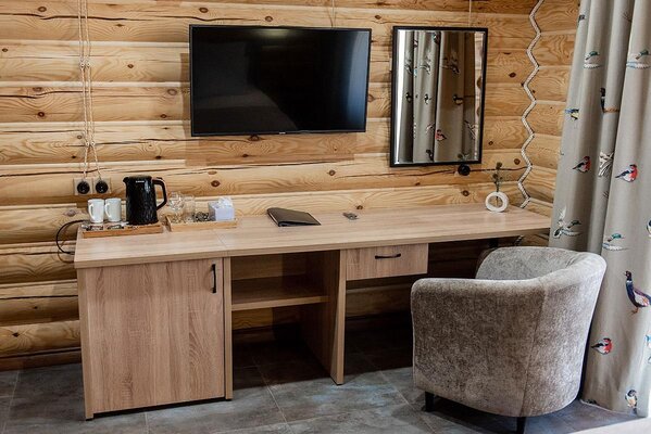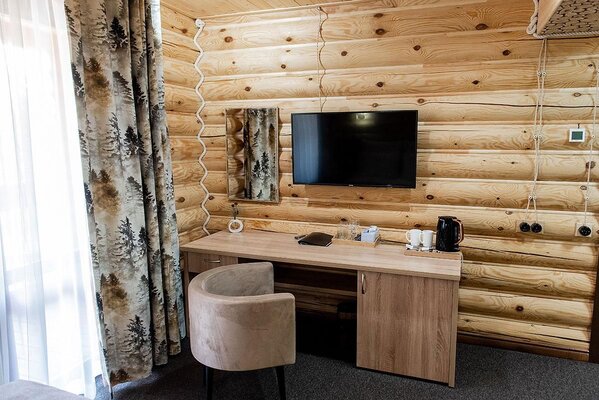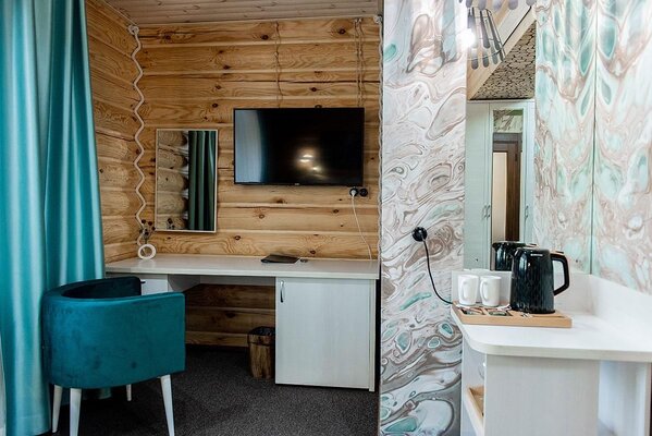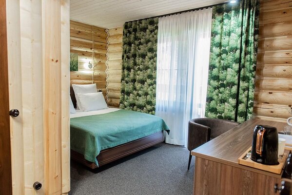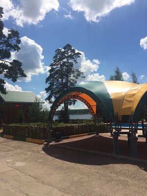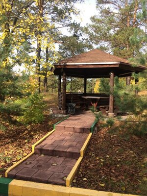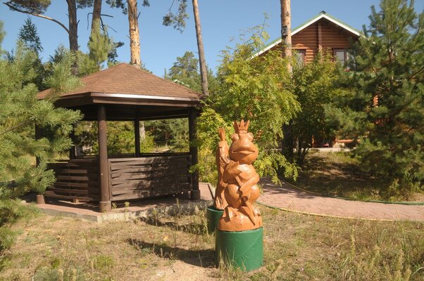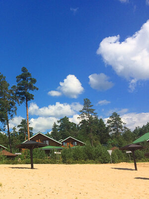Кафе «Домик в деревне» с уютной летней верандой и великолепным видом на сосновый бор. Кафе рассчитано на 30 посадочных или 40 фуршетных мест. В помещении кафе на цокольном этаже расположена бильярдный зал: имеется два стола русский и американский бильярд.