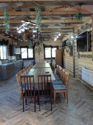 Кафе «Дом рыбака-охотника» с залом до 30 посадочных мест.
