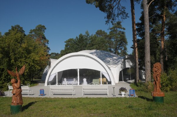 Малый шатер — для проведения корпоративных мероприятий и отдыха до 40 посадочных мест.