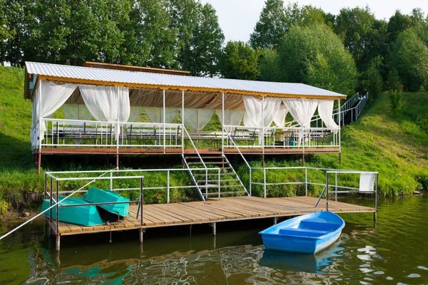 Гости базы отдыха попадают в комфортную и уютную обстановку. По аллеям высажены сосны, берег пруда украшают многолетние дубы. Все здания выстроены из массива сосны, в отделке применены только натуральные, экологичные материалы и текстиль. На базе имеется оборудованная, охраняемая автостоянка.