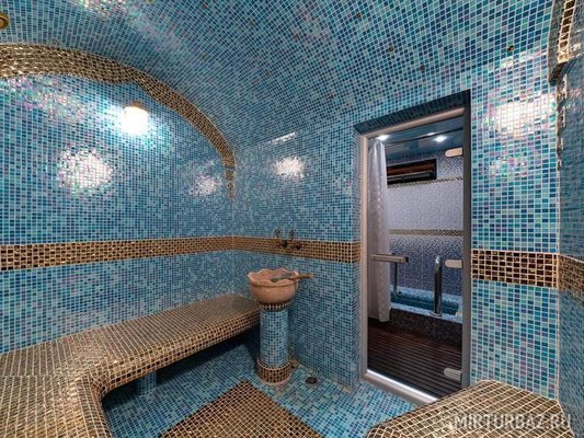 На территории гостиницы есть кафе с кавказской и европейской кухней, караоке-бар, хаммам, русская баня и летняя терраса с бассейном с прекрасным видом на побережье Каспийского моря. В отеле 5 номеров люкс, 13 стандартных номеров и 2 номера эконом-класса. Также есть отдельный дом класса «Апартаменты» для тех, кто хочет насладиться красивым отдыхом».