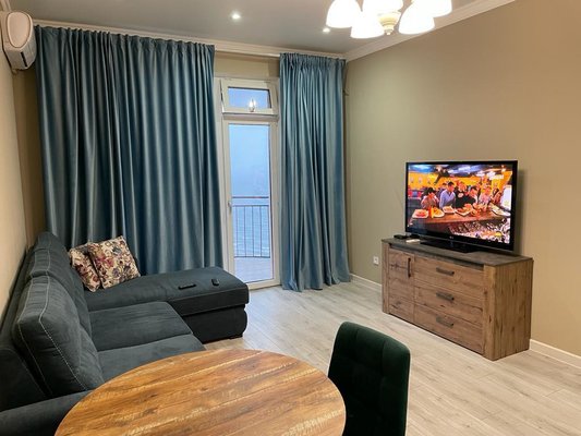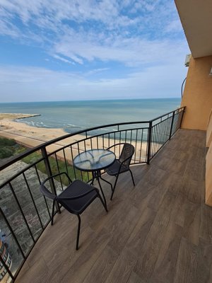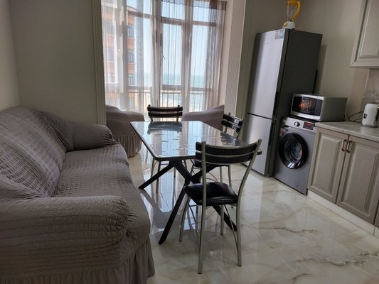 Апартаменты находятся прямо на берегу Каспийского моря по адресу город Махачкала, улица Времена года, дом 15.