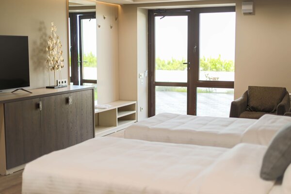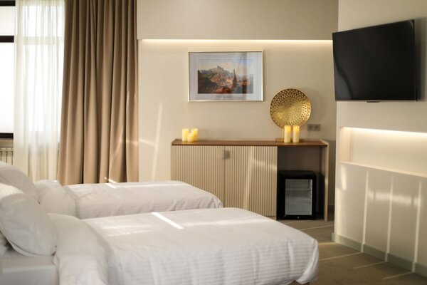 В самом сердце Махачкалы, всего в 70 метрах от Каспийского моря и в двух минутах ходьбы от песчаного пляжа, возвышается Atlas Hall — роскошный дизайнерский отель. Архитектура отеля — это удивительное сочетание современности и истории. Построенный в 2022 году, он напоминает морской корабль с мачтой и парусом, и гармонично вписывается в историческую часть города.