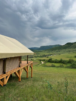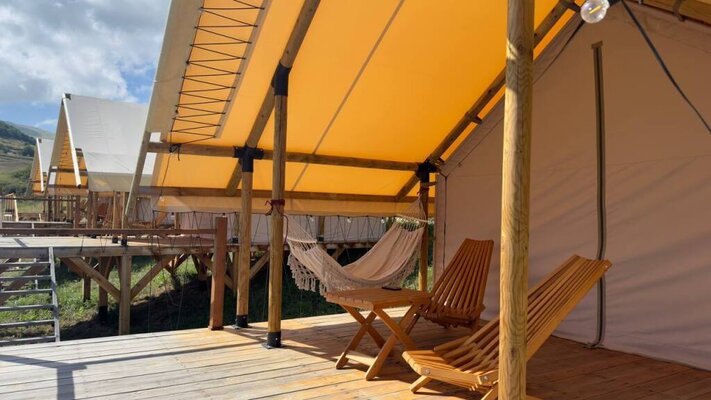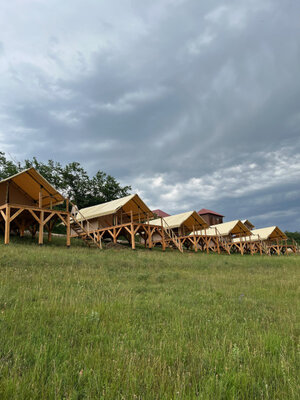 На большой, продуманной территории всего 10 глэмпинг-бунгало и уютный дом с двумя спальнями и просторной гостиной. Все объекты стратегически расположены так, чтобы с каждой террасы открывался захватывающий видовой пейзаж, позволяя гостям наслаждаться природой в полной мере и без помех.