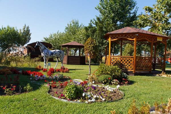 Территория вокруг коттеджей украшена фонтаном и клумбами с прекрасным газоном и красивыми цветами. Комплекс «Джами» – это закрытая благоустроенная территория с круглосуточной охраной, поэтому отдыхающим не придется волноваться о собственной безопасности.