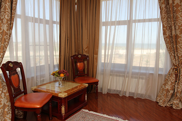 На территории комплекса находится ресторан, бар, кафе, детская площадка, собственная автостоянка, волейбольная площадка, массажный кабинет, сауна, бильярд, пляж – в общем, все необходимое для того, чтобы сделать отдых на Каспийском море незабываемым для вас.
