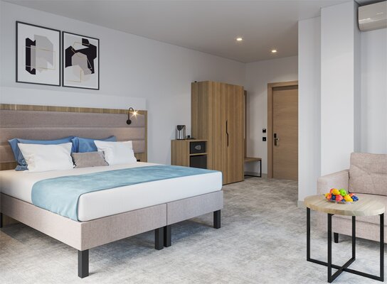 Интерьеры отеля выполнены в современном стиле, что создает атмосферу уюта и комфорта. Отдых здесь будет особенно приятным благодаря комфортным кроватям. Все кровати оборудованы мягкими матрацами, которые обеспечат вам отличный сон и полноценный отдых. Кроме того, на кроватях всегда свежее постельное белье, которое создаст ощущение чистоты и комфорта. Вы сможете полностью расслабиться и забыть о повседневных заботах, наслаждаясь уютом и комфортом.
