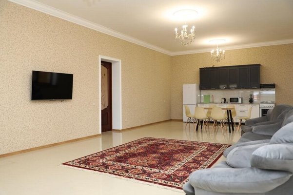 Добродушное отношение хозяев. Они следят за чистотой, за территорией, за удобством отдыхающих. В коттедже есть все удобства: посуда, микроволновка, холодильник, электрическая печь( можно спокойно приехать с едой и приготовить, что душе угодно), полотенца, гель и шампунь. В домике очень уютно. Есть телевизор и кондиционер. На улице есть мангал, так что и там можно пожарить, что угодно. От моря домик располагается недалеко, в 3 минутах езды. Переходить дорогу не решились, так как дети. Можно и пешком дойти. Море несоленое, нет чувство стянутости и соли, как в Чёрном. Надо учитывать и национальные особенности. В первый день на пляже (это муниципальный пляж) было много местных, а они все купаются в одежде. Вот и мы купили длинные футболки, хотя к нам никто не подходил и не делал замечание. На следующей день уже увидели отдыхающих в купальниках открытых и тоже решились купаться в привычных условиях. Все прошло отлично. Море песчаное, но поначалу метров 2 камни небольшие встречались, затем шел песок. Медуз и водорослей не было. Были в середине июля. Хозяин объяснил, что в море впадает река, а по пути река смывает камни с гор и в море. Если б чуть дальше отошли по береговой линии, то и камней не было б.