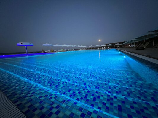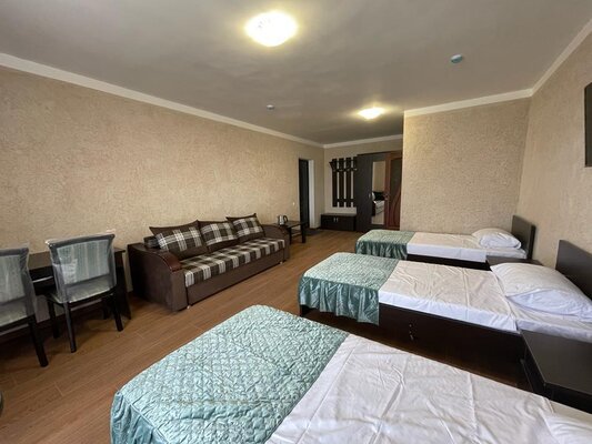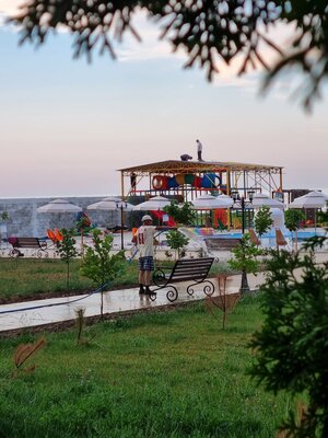 На территории отеля есть столовая, а также зоны отдыха с уютными беседками и площадкой для барбекю. Гости могут расслабиться у большого бассейна с гидромассажем и отдельной зоной для детей, где установлены шезлонги и зонтики. Для маленьких гостей предусмотрены игровые площадки с каруселями, качелями и удобными скамейками. Любители активного отдыха смогут взять напрокат сапы, багги, гироскутеры и самокаты. Для тех, кто прибыл на автомобиле, предусмотрена охраняемая парковка (за дополнительную плату).