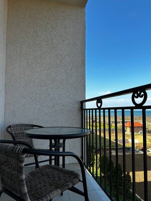 Великолепная кавказская и европейская кухня, панорамный вид на море, внутренний двор, бассейн, горы.