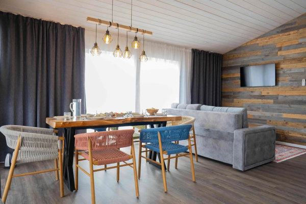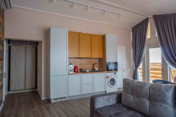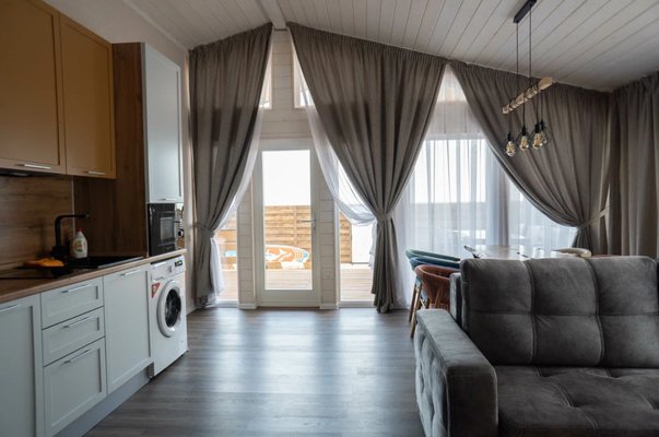 Внутри дома есть полностью оборудованная кухня с холодильником и кофе-машиной, а также стиральная машина, утюг и гладильная доска.