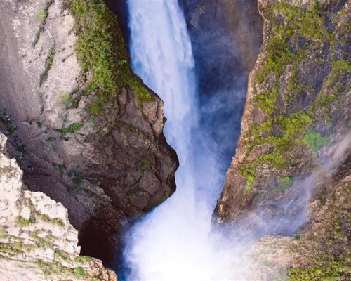 Салтинский водопад — чудо водопад России. В дождливую погоду поражает силой водяного потока, в солнечный день можно наслаждаться игрой света в каньоне. Цветовая гамма на стенах пещеры меняется в зависимости от погоды и времени суток.