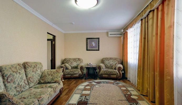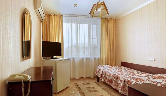 Гостиница была открыта в 1969 году, а в 2012 году была произведена её реставрация. Сегодня к услугам гостей предлагается 96 комфортабельных номеров различных категорий – от стандартных одноместных и двухместных, до апартаментов из 8 комнат, общей площадью 170 кв. метров. Номерной фонд гостиницы: 4 люкса, 29 полулюксов, 34 однокомнатных одноместных и 29 двухместных стандартных номеров.