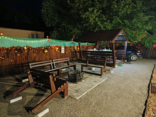Кроме того, вы сможете воспользоваться беседкой для отдыха, качелями, гамаком, настольным теннисом, шезлонгами, аэрохоккеем, баскетбольным кольцом, нардами, гигантской джангой, а также чистой водой из скважины и мангалом с необходимыми принадлежностями. За дополнительную плату вам предложат тир и продажу дубовых веников.