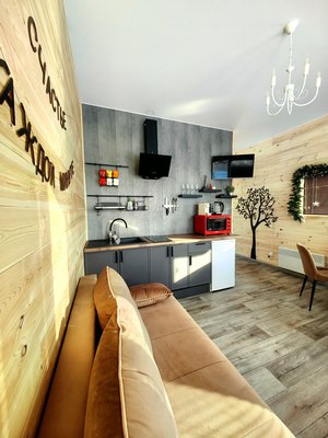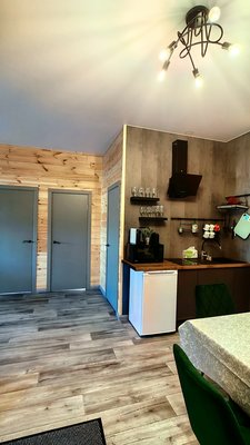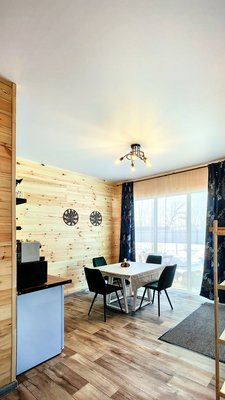Самостоятельность в выборе еды. Приезжайте с любимыми продуктами и готовьте все, что пожелаете. Для этого предоставляются все условия: кухонная зона, техника, включая холодильник, посуду для хранения, приготовления и сервировки, а также мангальная зона со всем необходимым. В каждом домике есть чайный набор.