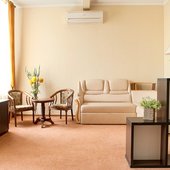 Гостиница «Бизнесцентр» располагается неподалеку от набережной. В гостинице предоставляются стандартные комнаты, номера повышенного комфорта, люкс и полулюкс. Помимо бесплатных услуг консьержа, парковки и высокоскоростного интернета, гости могут воспользоваться дополнительным сервисом. Сюда относится трансфер, проведение экскурсий и организация активного отдыха. Для деловых людей предоставляется в аренду кабинеты с целью проведения конференций.