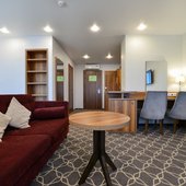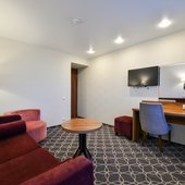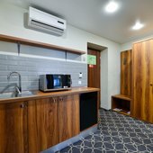 К услугам гостей переговорная комната на 15 человек, укомплектованная мультимедийный оборудованием и всем необходимым для проведение успешных встреч.