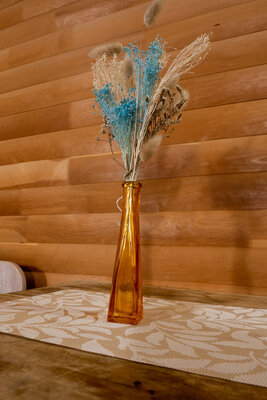Беседка сделана из круглого бревна, построена в форме восьмигранника. Со всех сторон стоят окна. Внутри всё сделано из дерева и оформлено нанайскими орнаментами.