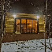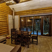 Гриль-избы открылись летом 2016 г. Это небольшие домики в которых вы можете готовить свои любимые лакомства не разбивая компанию, как это бывает обычно на тех, кто готовит и тех кто отдыхает. Вы все сидите за одним столом, готовите, разговариваете в тепле и комфорте.