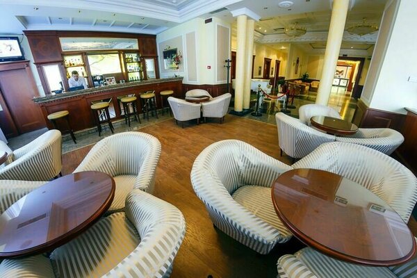 Стильный и уютный лобби-бар, расположенный в холле гостиницы дает возможность своим гостям прекрасно провести вечер и предлагает разнообразный выбор напитков и коктейлей. Спокойная обстановка идеально подходит как для деловых переговоров, так и для неторопливой беседы за чашечкой ароматного кофе.
