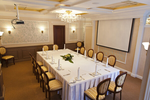 3. Малый конференц-зал предназначен для небольшой аудитории слушателей — около двадцати человек. Зал оснащён LCD-проектором и экраном, по желанию любое дополнительное оборудование на выбор. Уютная атмосфера зала не оставит равнодушными делегатов мероприятия! Ваша конференция, тренинг или презентация пройдут в тёплом кругу. Профессиональные менеджеры помогут в подготовке мероприятия, расстановке мебели и рассадке гостей. Для Вас любые услуги ресторана от кофе-брейка или бизнес-ланча до ужина или банкета.