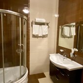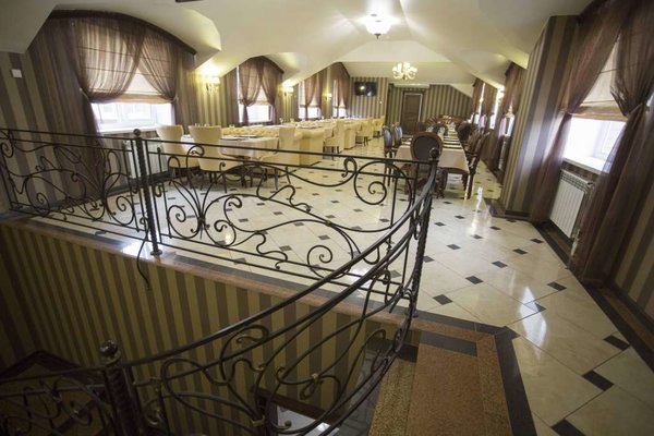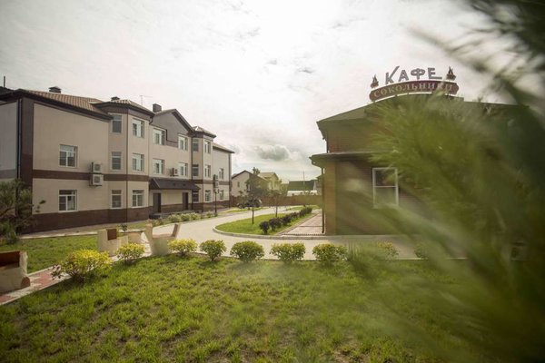 При отеле имеется кафе на 45 посадочных мест, которое предлагает комплексные завтраки по утрам. Имеется бесплатная охраняемая парковка. Беспроводной (WI-FI) доступ в сеть Интернет имеется на всей территории комплекса без ограничений.