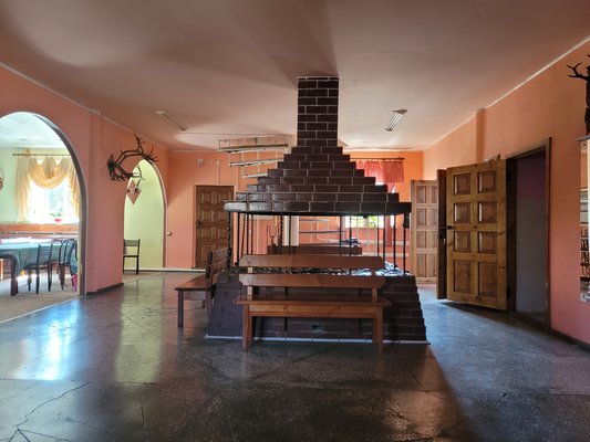 На первом этаже находятся каминный зал, столовая-гостинная, кухня, комната с бильярдом, душевые и туалеты;