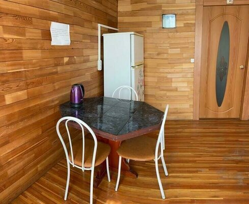 Неисправный, грязный диван, в помещении пыльно, полы обшарпанные, микроволновка плохо работает, унитаз и душевая раскачивается, телевизор с пульта не включается, в морозилке треснувшие ящики. Номер был заявлен как 2+1, т.е. 2 взрослых на основном месте и 1 взрослый на допместе, а по факту односпальная кровать и диван. Внешний вид дивана не вызывал доверия, поэтому мы не рискнули его раскладывать. С нас запросили доплату в размере 800 рублей в день за третьего человека, при этом отказались предоставить даже раскладушку, не предоставили третий комплект белья, одеяло и подушку. Хорошо, что у нас с собой был надувной матрас, мужу пришлось спать на нем, и купить одеяло на следующий день, потому что было холодно. В первый же вечер к нам в домик ломились жильцы из соседнего домика, сказали , что наш домик - это общая кухня. Здорово мы отдохнули на летней кухне за 6600 рублей в сутки! Номер сдали, все было нормально, но через девять часов нам позвонили, якобы мы сломали им диван, да еще и должны за потерянную аренду, т.к. заехавшие после нас жильцы отказались от домика. Хозяйка базы отказалась выслушать наши аргументы, поэтому решать ситуацию будем через суд. За все время пребывания на базе, никаких сотрудников на территории не было, никто не поинтересовался, как мы устроились.