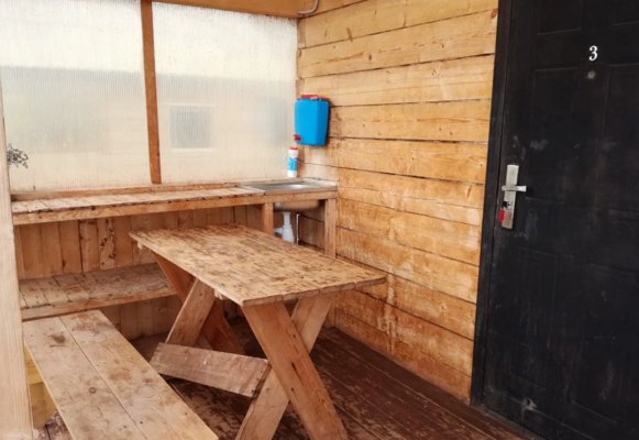 На территории базы располагаются летние душевые с пресной водой. Пользование душевыми входит в стоимость проживания на базе.
