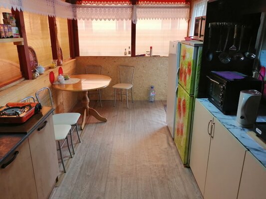 Отдохните в Хакасии на базе отдыха «Степное гнездо»! К вашим услугам комфортабельный дом на 6 человек с кухней, ванной и гостиной с телевизором, а также гостевой дом с отдельными номерами и общей оборудованной столовой (санузлы — на этаже).