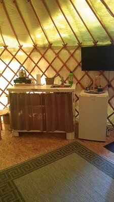 Возможно размещение с животными за дополнительную плату. За ним самостоятельно убираете, не оставляете без присмотра, не запираете в юрте одного. С собой привозите посуду, лежанку для питомца.