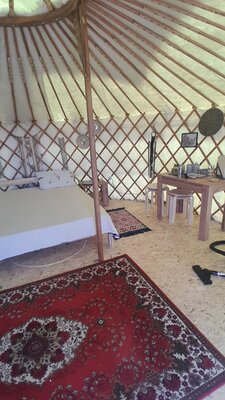 Возможно размещение с животными. За ним самостоятельно убираете, не оставляете без присмотра, не запираете в юрте одного. С собой привозите посуду, лежанку для питомца.