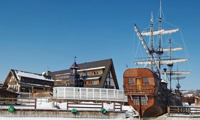 Очень удачное местоположение гостиничного комплекса и ресторана - прямо в истоке Ангары, с видами на Байкал. Вид в августе: В октябре: Здесь в любое время года очень красиво! Сами корпуса гостиничного комплекса выглядят весьма оригинально: Симпатичные балконы с которых можно любоваться красотами природы: Корпуса гостиничного комплекса: Залы ресторанов комплекса: Здесь есть баня, и, в общем, все для проведения замечательного...