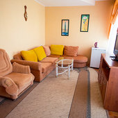 В стоимость включено на каждого 1 простынь, 1 полотенце. Имеется бассейн (2X2). В комнате отдыха есть уголок отдыха, кухонный гарнитур, музыкальный центр, телевизор, микроволновая печь, чайник, вся необходимая посуда для пребывания.