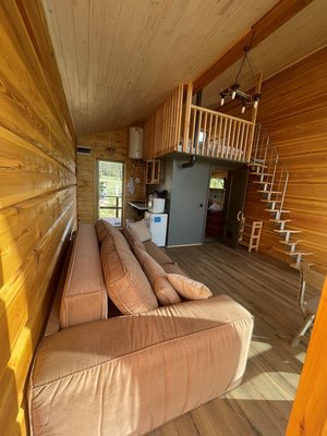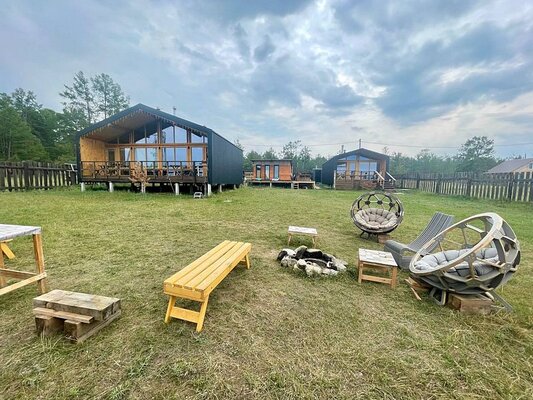 Большой дом в стиле Барнхаус имеет два отдельных жилых помещения, каждое с отдельным входом и собственным санузлом. Дополнительно есть отдельный двухместный панорамный домик. Все помещения оснащены современной мебелью, красивой посудой, удобными матрасами, свежим бельем и необходимой бытовой техникой для комфортного проживания. Из окон открывается завораживающий вид на озеро Байкал, горы и лес. Здесь вы не услышите шума пьяных гостей и громкой музыки, криков и драк, которые часто сопровождаются большим количеством людей на других курортах. Здесь вас окружает только природа.