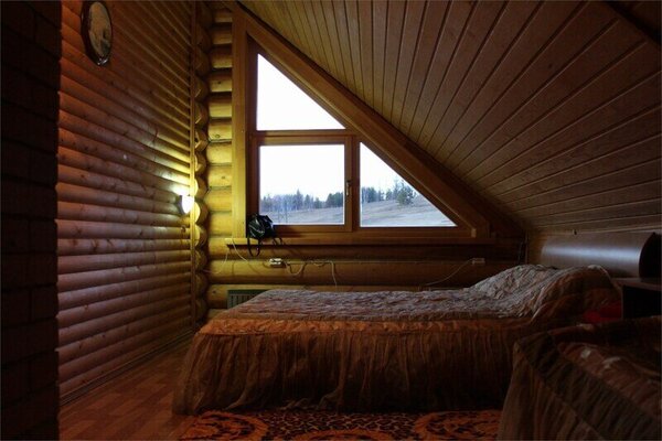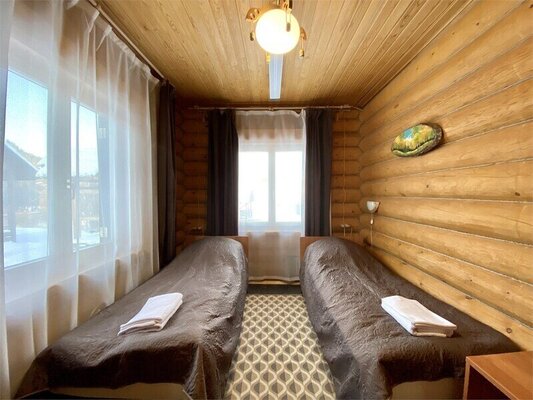 Номера гостевого дома «Таловское» оформлены в уютном деревенском стиле, сочетая простую, но функциональную мебель с теплыми узорчатыми коврами и натуральными деревянными панелями. Каждый номер оборудован современным телевизором с плоским экраном, а из окон открывается пленительный вид на бескрайние сибирские просторы.