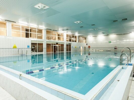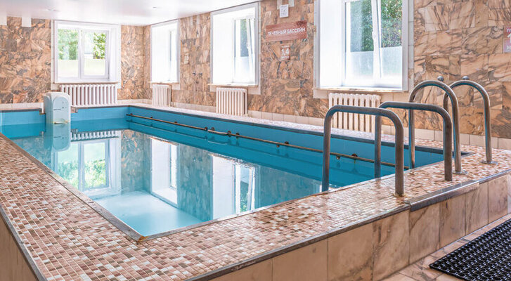 Плавательный бассейн расположен в уникальном здании водогрязелечебницы санатория. Бассейн доступен детям от 7 лет. Основные преимущества бассейна: