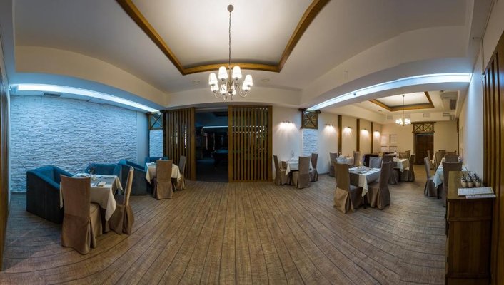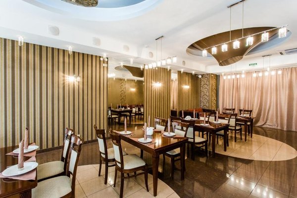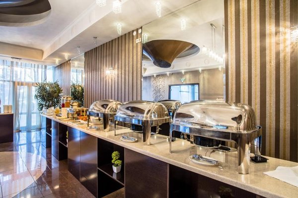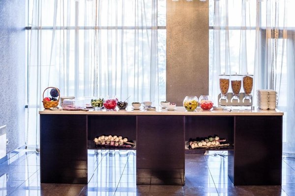 По утрам в ресторане отеля сервируется завтрак «шведский стол», а вечером можно заказать различные блюда европейской и сибирской кухни.