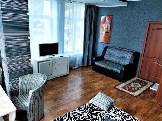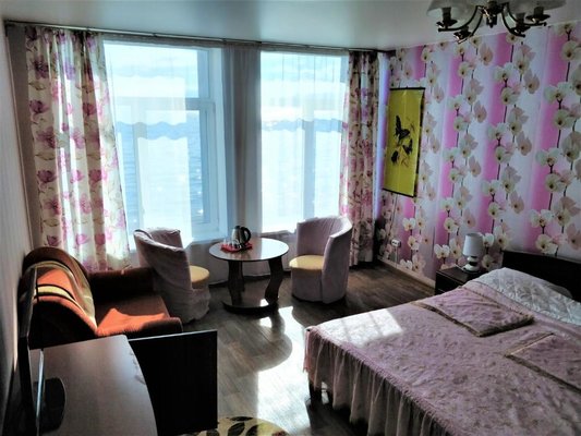 В некоторых номерах обустроена гостиная зона. Из некоторых номеров открывается вид на горы или озеро. В числе удобств телевизор с плоским экраном.