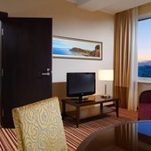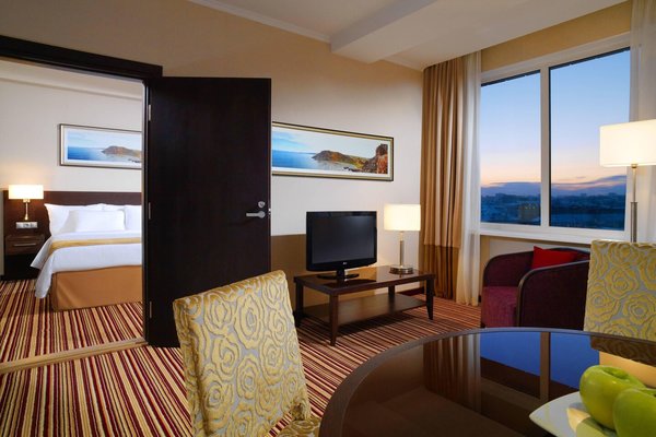 К услугам гостей бесплатный тренажерный зал, номера, оснащённые кондиционерами и оборудованные телевизорами с плоским экраном. В местах общего пользования работает бесплатный высокоскоростной Wi-Fi. Тех, кто предпочитает питание в отеле, порадует изысканное меню ресторана «Место встречи» и приятная атмосфера бара «Кедр». Если вам необходимо организовать мероприятие, к вашим услугам многофункциональные конференц-залы и высококлассный кейтеринг.