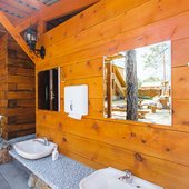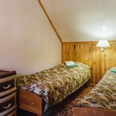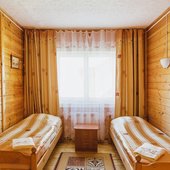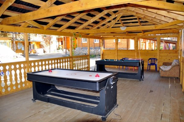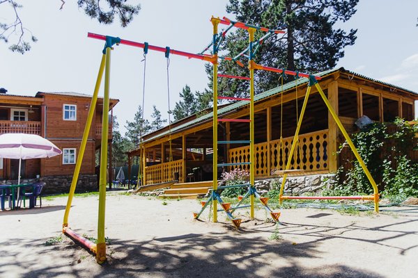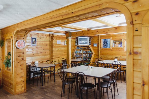 На территории располагается отдельное кафе, в котором гости могут попробовать настоящую сибирскую кухню от профессионального шеф-повара. Кафе выполнено в современном стиле с отделкой под натуральное дерево, что создает домашнюю атмосферу.