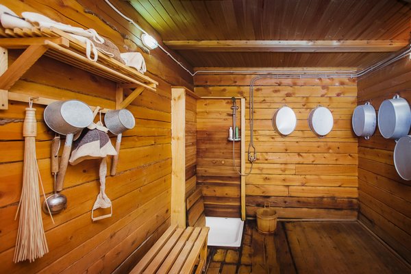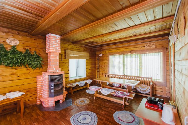 На территории гостиницы «Лада» находится настоящая русская баня с комфортной парной, мойкой и комнатой отдыха с большим столом и камином.
