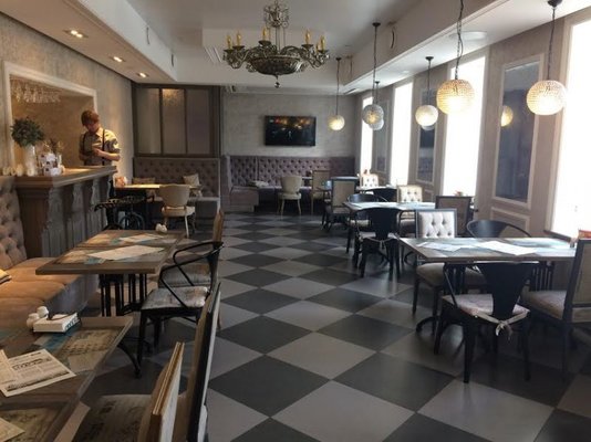 Одноименное кафе «Михаил Строгов», которое находится на первом этаже отеля.