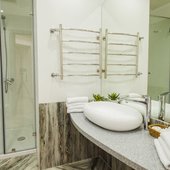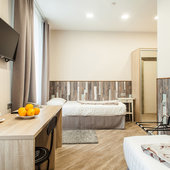 - от ж/д вокзала: от жд вокала «Пассажирский» необходимо пройти 700 м в сторону автобусной ост. «Райсовет», на автобусе № 3, № 42, № 43, № 480 доехать до ост. «1-я Советская улица» и пройти 700 м до отеля;
