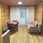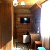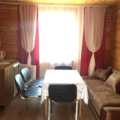 Зона отдыха на 10 человек. Раздевалка и помывочная. Парилка до 4 человек.