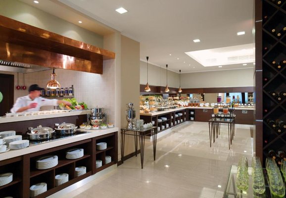 В ресторане «Место встречи» сервируют полноценный американский завтрак «шведский стол». На обед и ужин подают блюда сибирской/русской и интернациональной кухни. Желающие могут приобрести закуски и напитки в баре «Кедр».