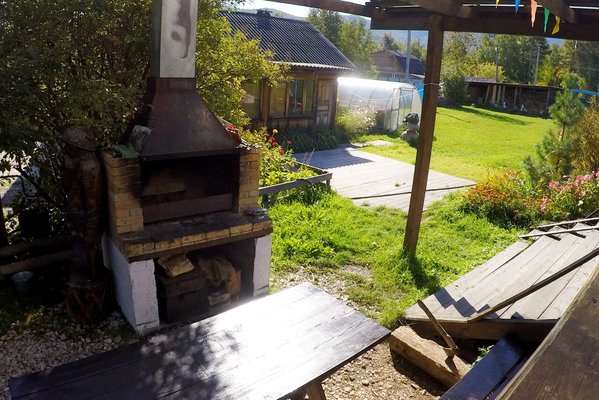 Зона барбекю, большой мангал, костровище и коптильня для рыбы находятся под навесом, можно готовить шашлык, плов или рыбку в любое время суток и в любую погоду.