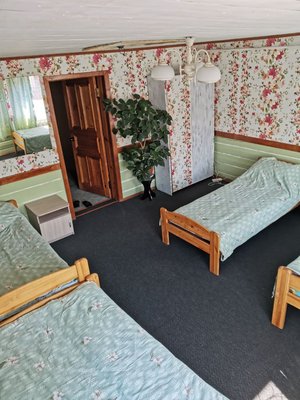 Уютный общий зал для гостей. Здесь есть камин, Wi-Fi, Sony PS3, библиотека с классической и современной литературой, телевизор, кабельное, большое количество фильмов, мультиков и музыки, настольные игры для любого возраста, гитара, удобный большой диван. Всем, кроме камина, гости могут пользоваться бесплатно.