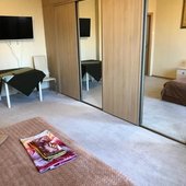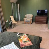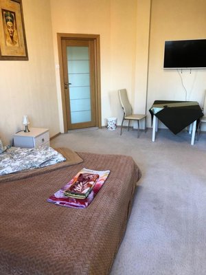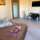 Во всех номерах гостевого дома обустроена гостиная зона. В номерах гостевого дома Sweet Home установлен письменный стол и телевизор с плоским экраном.